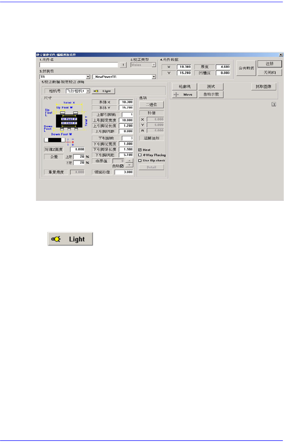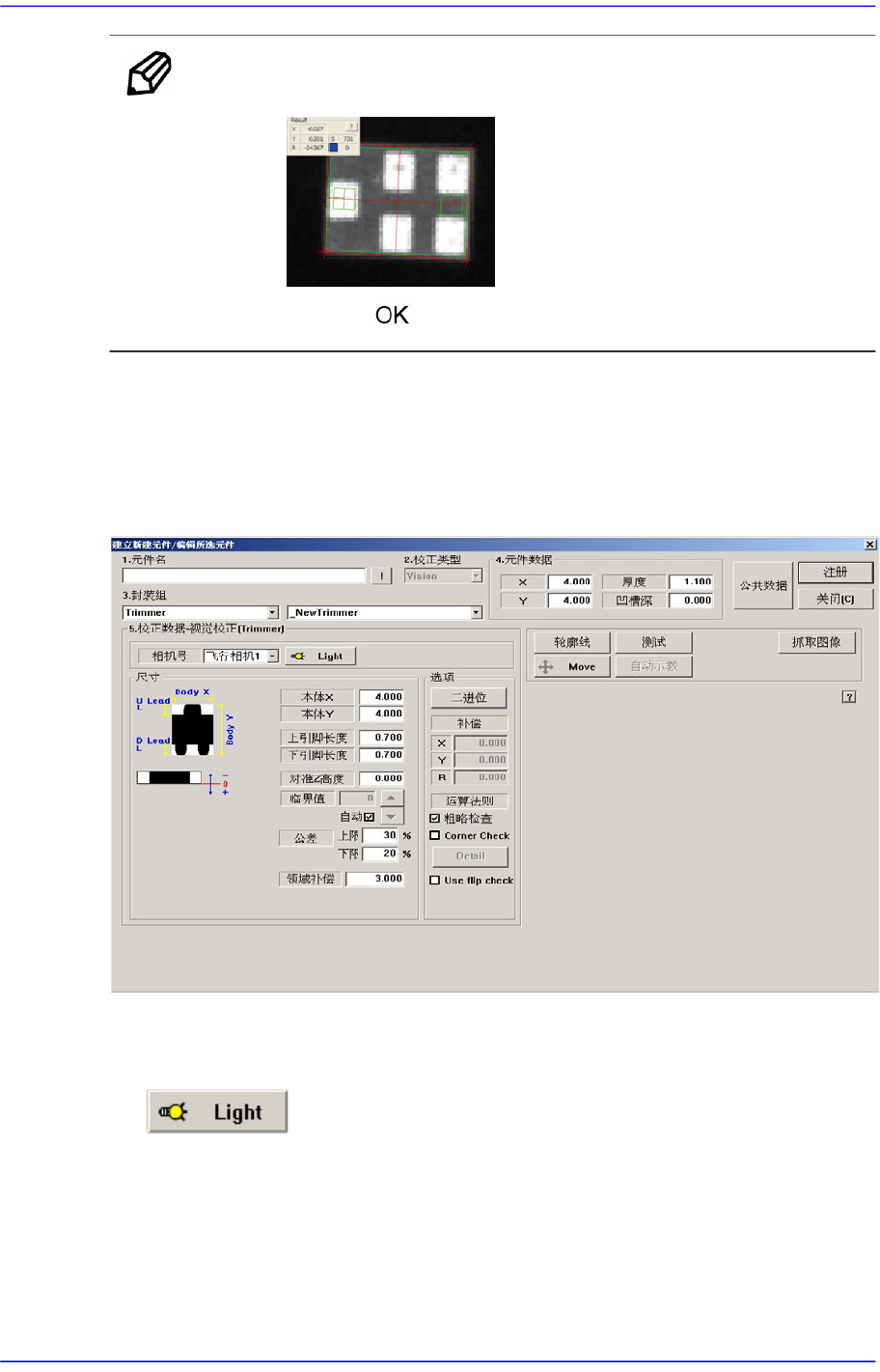 设定识别部品用摄象机的照明度。 详细事项请参照 “7.1.1 共同Align Data” 。