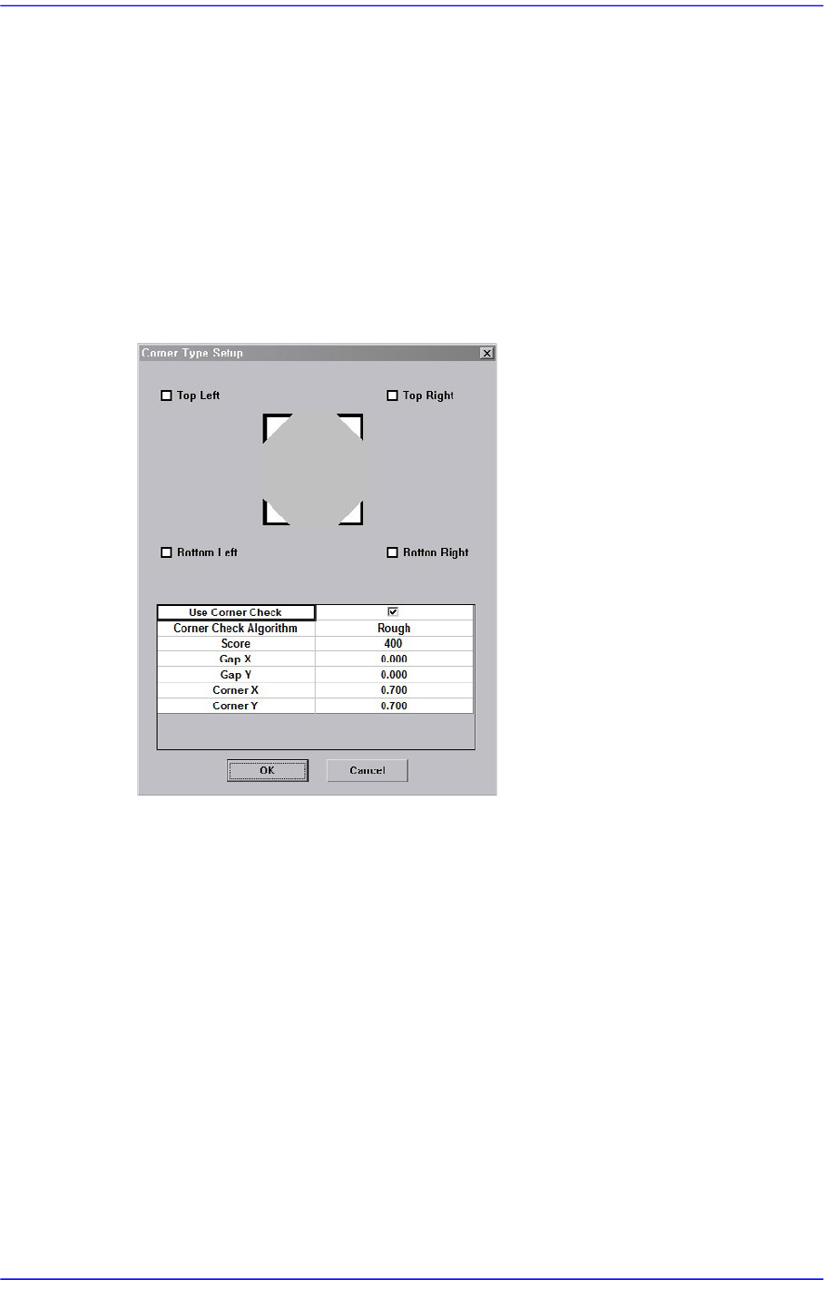 需要使用<角的检测能力>角部检查算法时,请圈选该复选框。