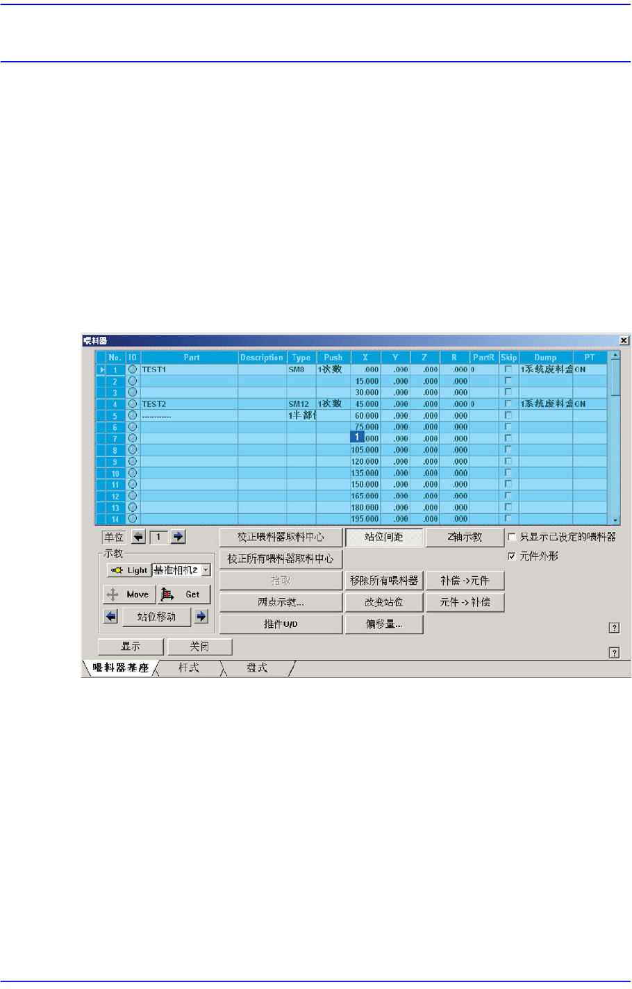 指定装在各喂料器的部品,吸着部品位置的示教,吸着部品测试等操作。选择此功