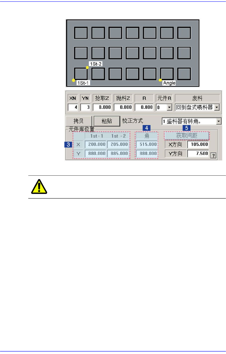 托盘中零件中心之间的距离。