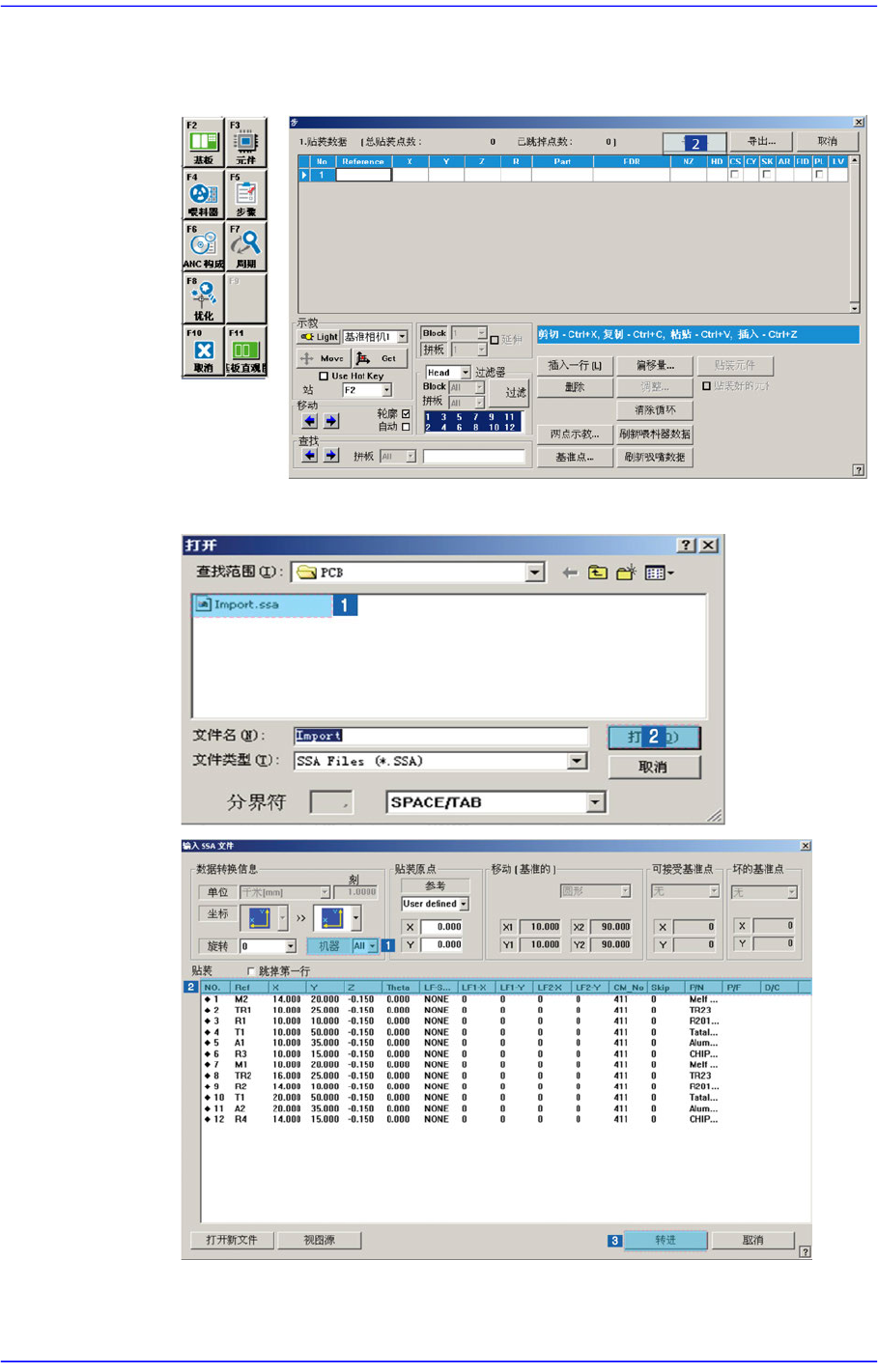 Step对话框中为了对选定的贴装点进行贴装时使用。