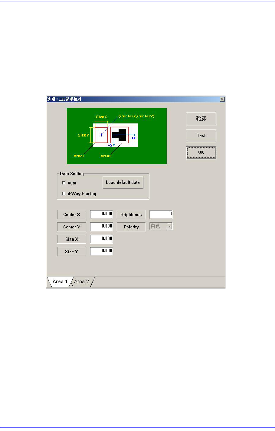 在“Area2”选项卡对话窗口设定LED的Black区域。