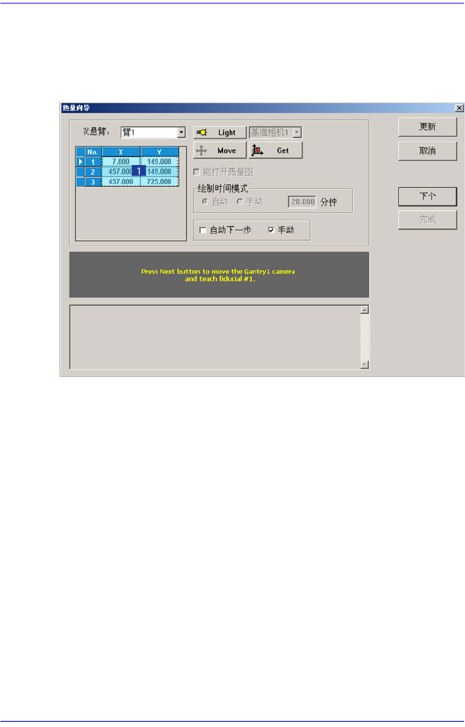 把相应Gantry的基准相机移动到在Grid领域中选择的Fiducial Mark位置。
