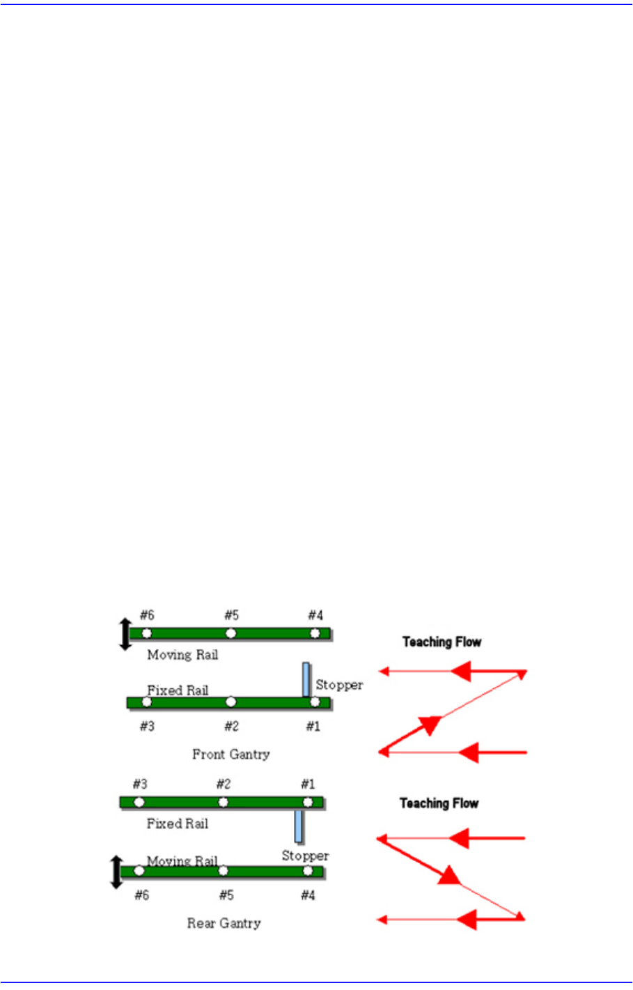 14-40 Advanced Chip Shooter DECAN S2 Administrator’s G ui de 14.3.8. Gantry Mapping 可以校准作为拱架映射 (Gantry Mapping) 基准的基准标记位置。 执行校准时, 需要示 教输送带上的 6 个基 准标记点。 示教顺序如下 : 必须先示教固定轨 (fixed rail) 上的基 准标记, 同 一轨道上的基准点则应该从右侧开始到左侧的方式进行示教…