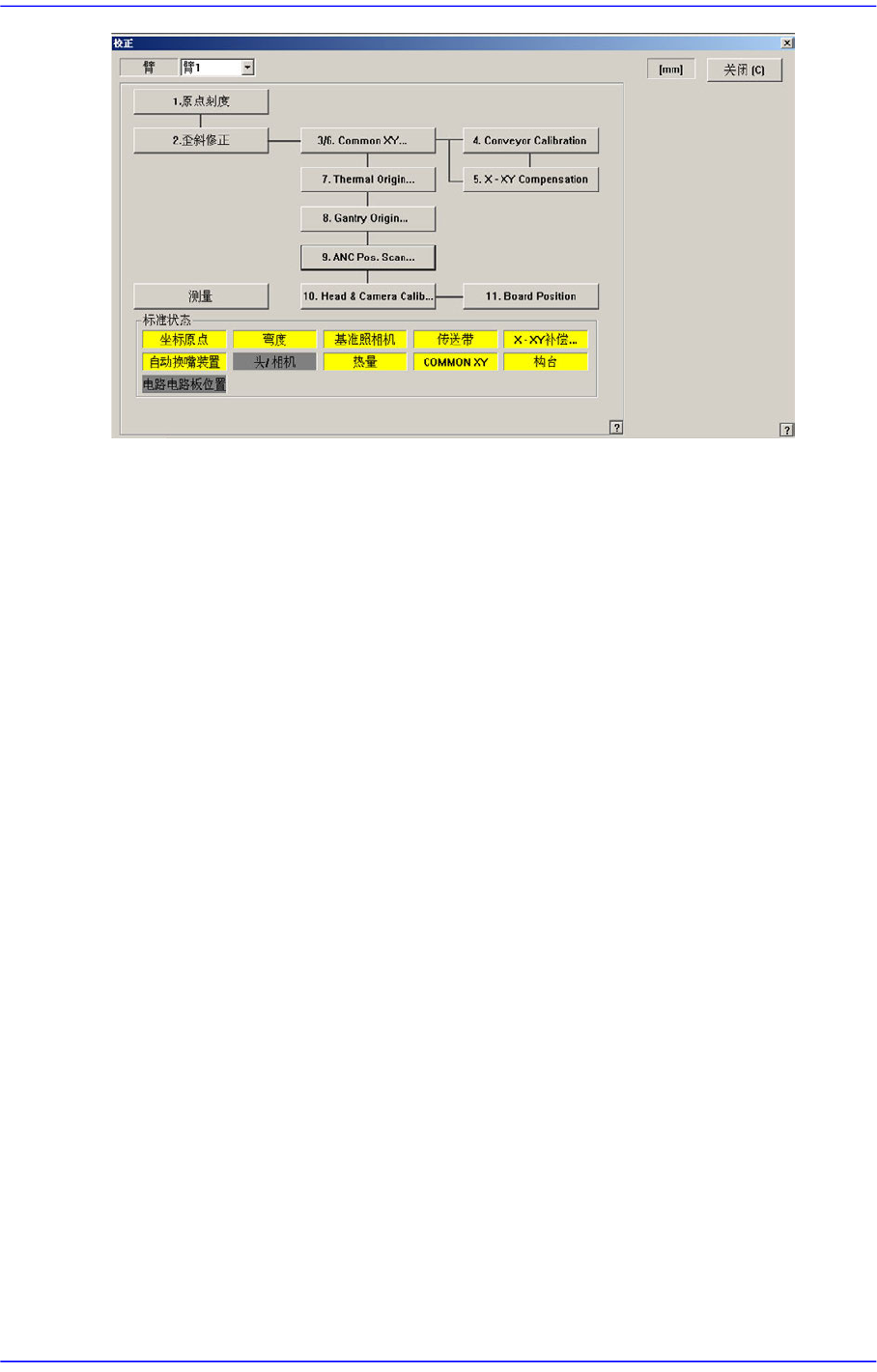 选择要Calibration的项目。 按特定项目的按钮则在消息窗依次显示必要的说明。