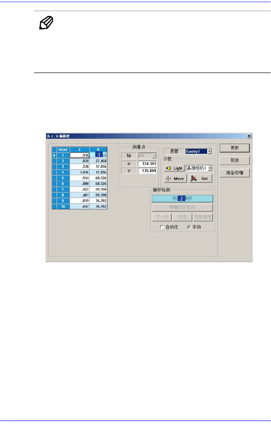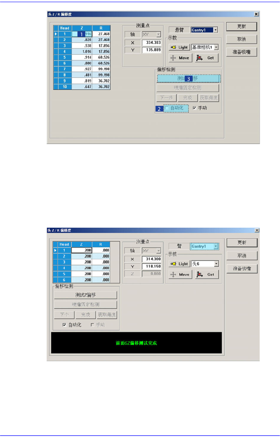 14-51 Machine Calibration 备 注 正常的 Z 偏移 值 如 下。 Head1~ Head6: -1.5 ~ 1.5 mm 若 Z Off s et 值超出该 范 围, 则说明磁头有严重的器具性问题, 需 要确认 home 位置、 主轴、 LM 和电动机的工作是否正常。 下面介绍 R Offset C alibration 执行方法。 1. 需要在 <Grid> 领域 执行校正的 He ad 的 …