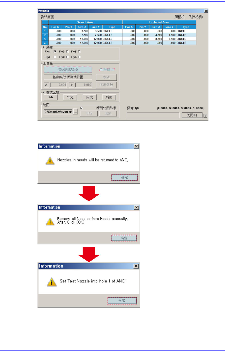 6. 按照下列顺序单击<确定>按钮把安装在Head上的吸嘴全部拆下后,把Fly