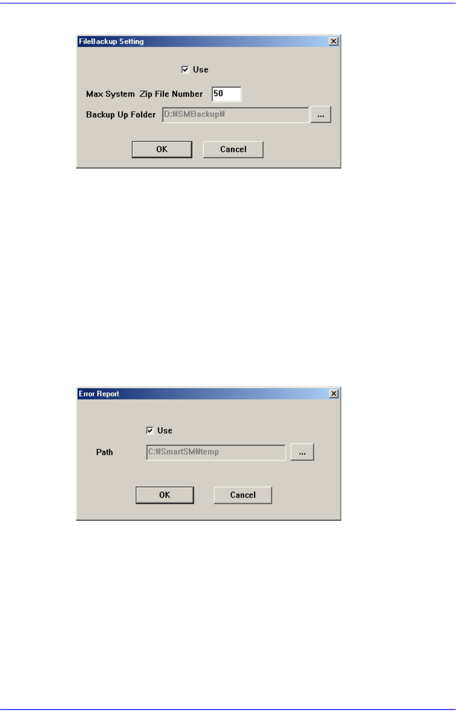 15-46 Advanced Chip Shooter DECAN S2 Admin i s trator’s Guide 图 15.16 “ FileBackup Setting ” 对 话框 <Use> 选择框 圈选了该复选框后, 就能 使用文件备份功能。 <Max System Zip File Number> 编辑框 设定备份文件的最大文件数量。 <Backup Up Folder>…