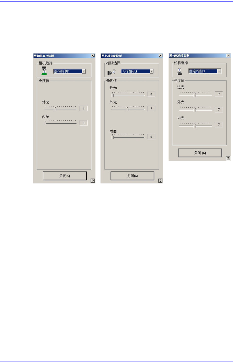 选择飞行相机时,可设置的照明值范围如下。