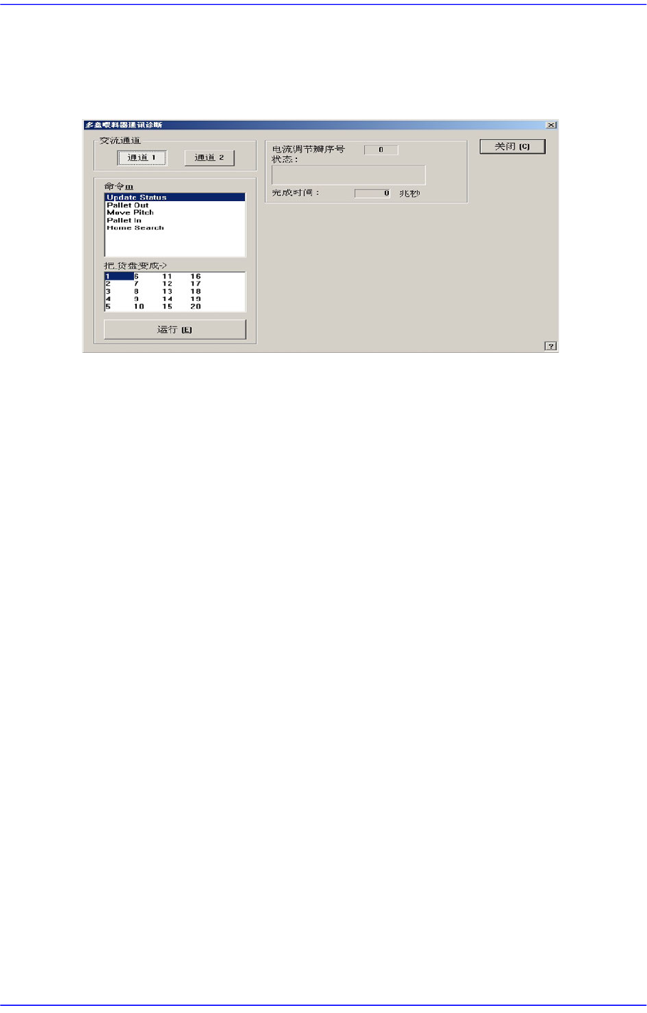 检查与盘式喂料器的通讯。单击此按钮显示如下的对话框。