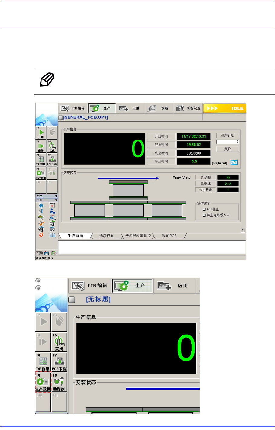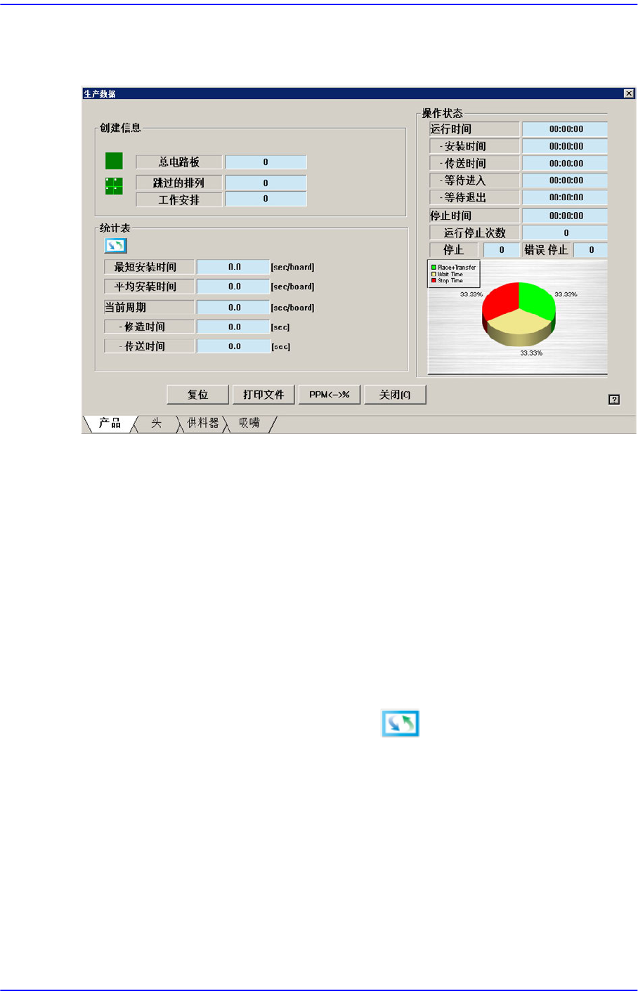 显示与贴装时间有关的信息。点击右侧的 按钮则显示各个不同形态的信