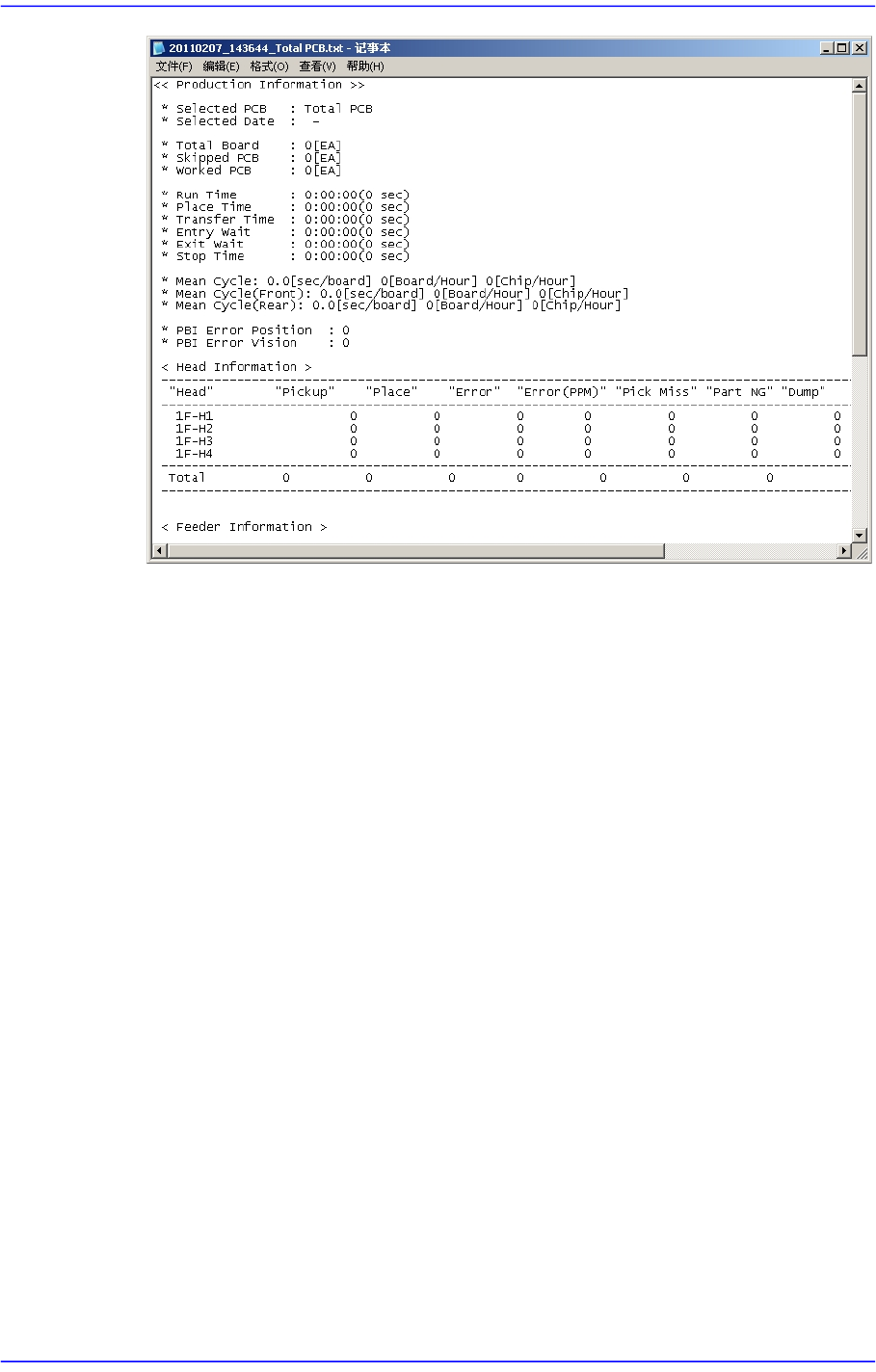 18-6 Advanced Chip Shooter DECAN S2 Admin i s trator’s Guide <Head> 标题框 表示总磁头数。 <Pickup> 列 表示吸附部件总数。 <Place> 列 表示贴装部件总数。 <Error> 列 吸附的部件利用 V ision 进行部件识别后, 部件 贴装失败次数。 <Error(PPM)> …