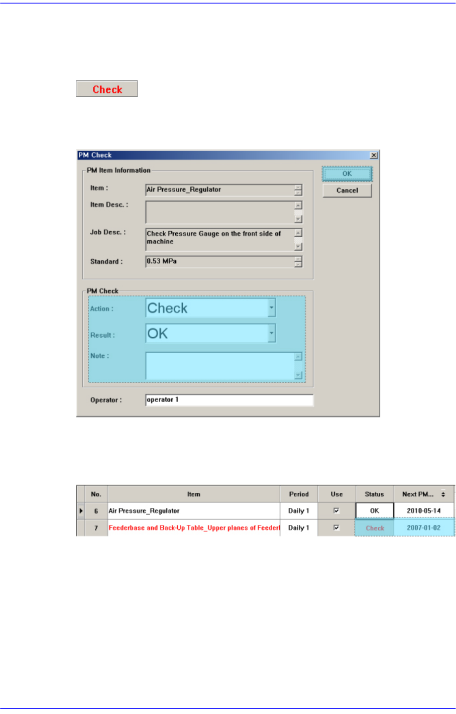 ”Check”变为”OK”同时在<Next PM>列中更新为PM Check的日期。