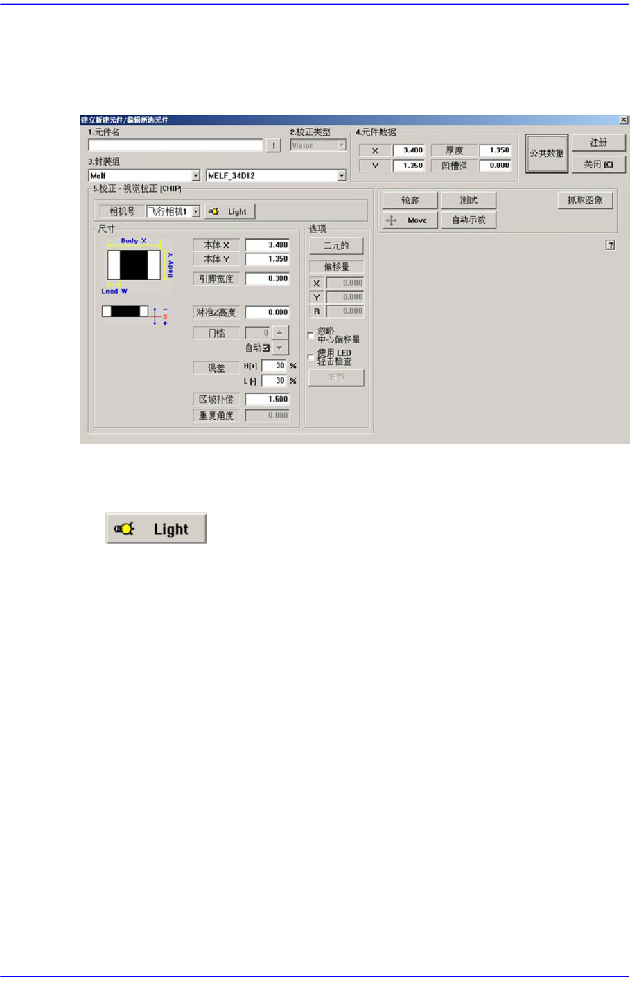 设定识别部品用摄象机的照明度。 详细事项请参照 “7.1.1