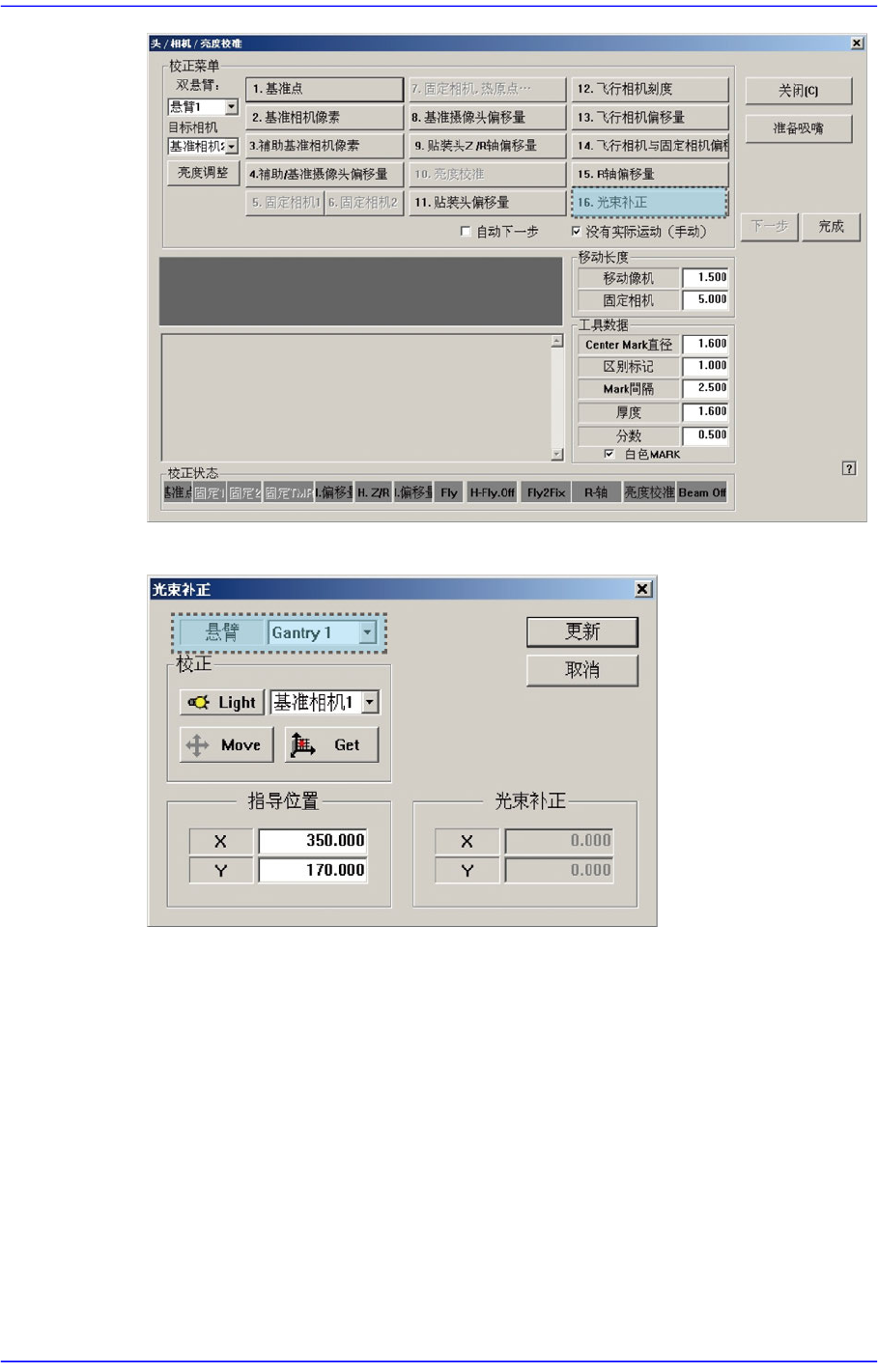 12. 完成对 Gantry1的校正后在<Gantry> 组合框中选择’Gantry2’以相同的方法执行