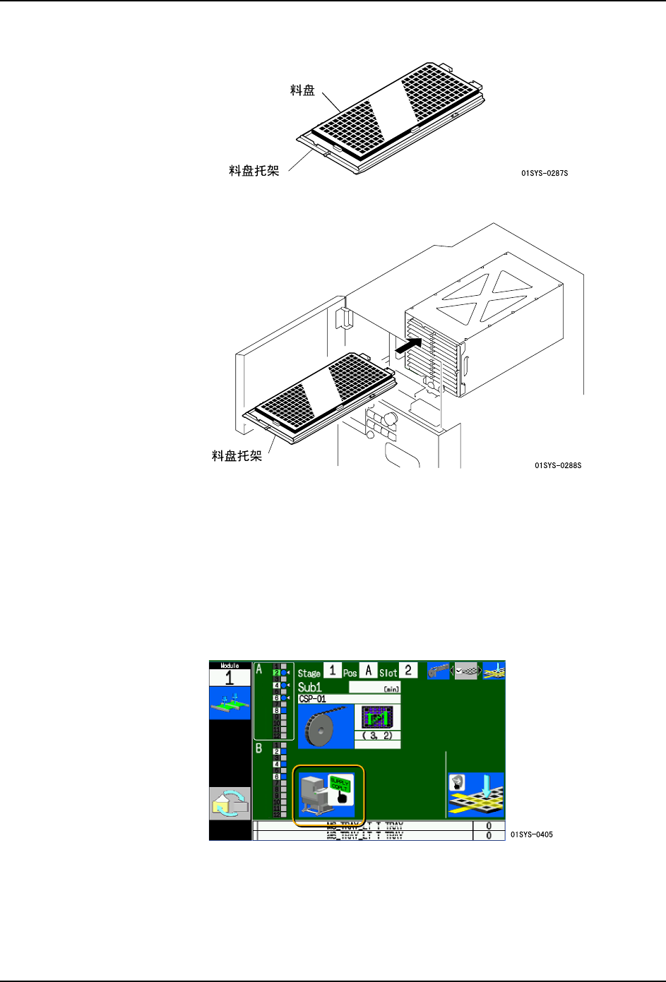备注 )即使没有完成所有料盘的补充,如果生产中需要的料盘已被安装,就能够重新开始生