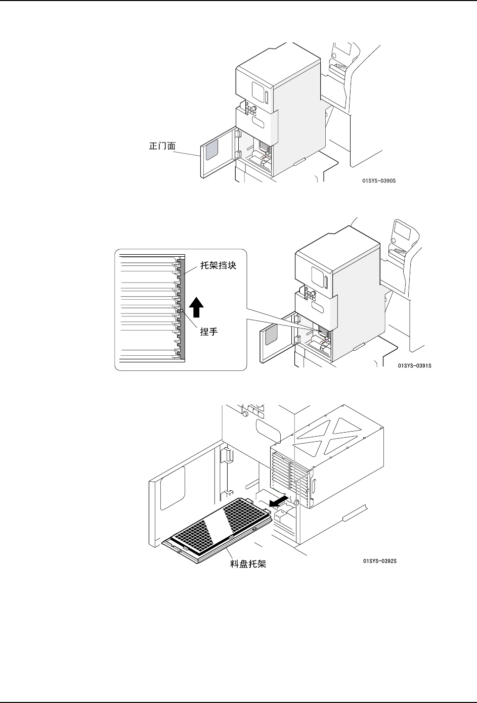 3. 从料槽 12 内取出料盘托架。