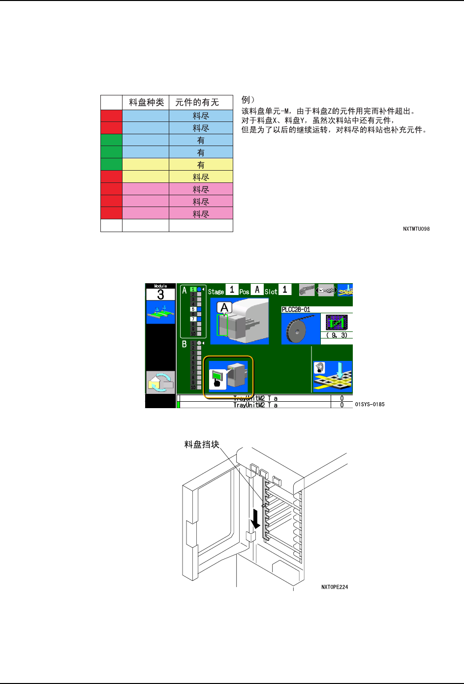 4. 生产 QD142-06 116 NXT II 系统手册 4. 需要指定料盘吸取点时, 在这里进行设定。 请 参照 " 4.10.3 指定料盘元件的吸取开始点 "。 5. 在补充的料槽被选择的状态下, 按下操作面板上的 OK 按钮。 a. 此时, 不仅是出现停止原因的料槽, 对于其他的料槽, 如果料尽, 也请设置新的料盘。 b. 对于料尽的料槽,如果不需要补充时,请 取出空料盘。 6. 当 完成所有的补充后,就会…