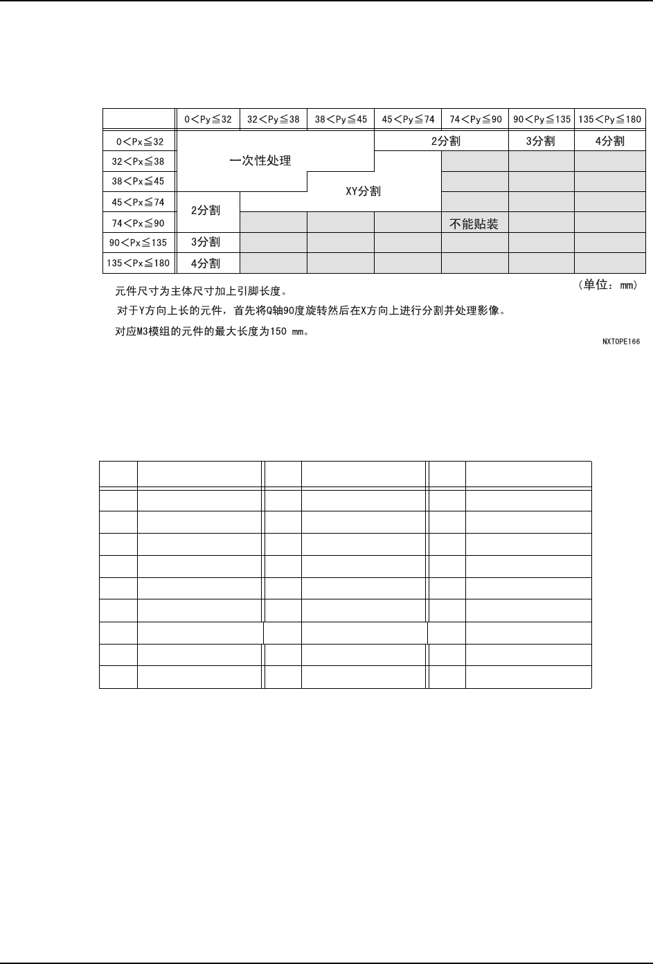 备注 )双模组生产时则不进行分割影像处理。双模组生产能够贴装的元件的尺寸最大为 38 x