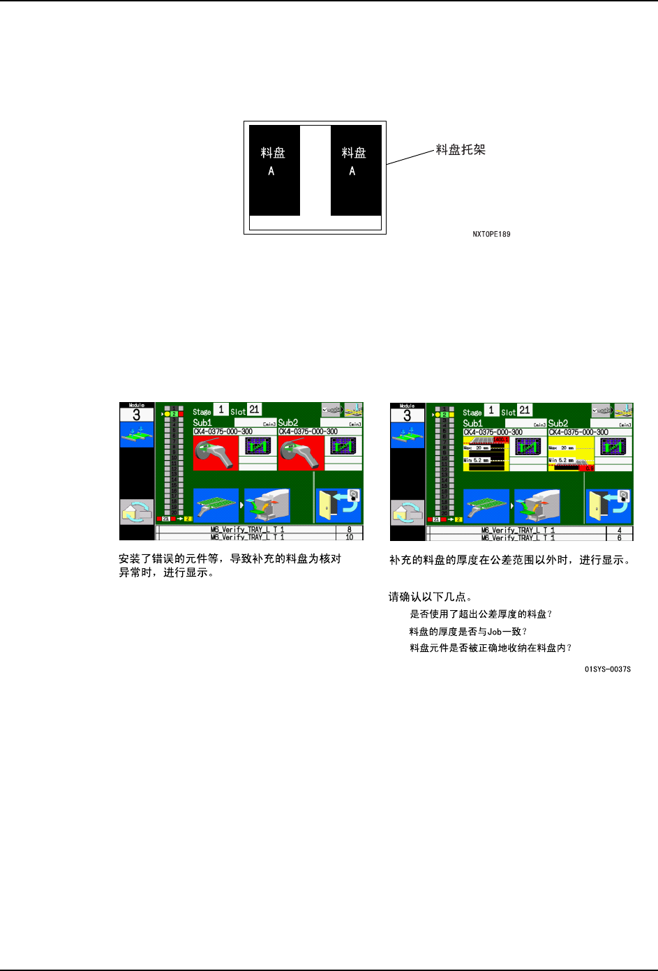 1. 当测出放置在供应部的料盘元件高度检查异常时,虽然机器会将料盘托架返回到供应
