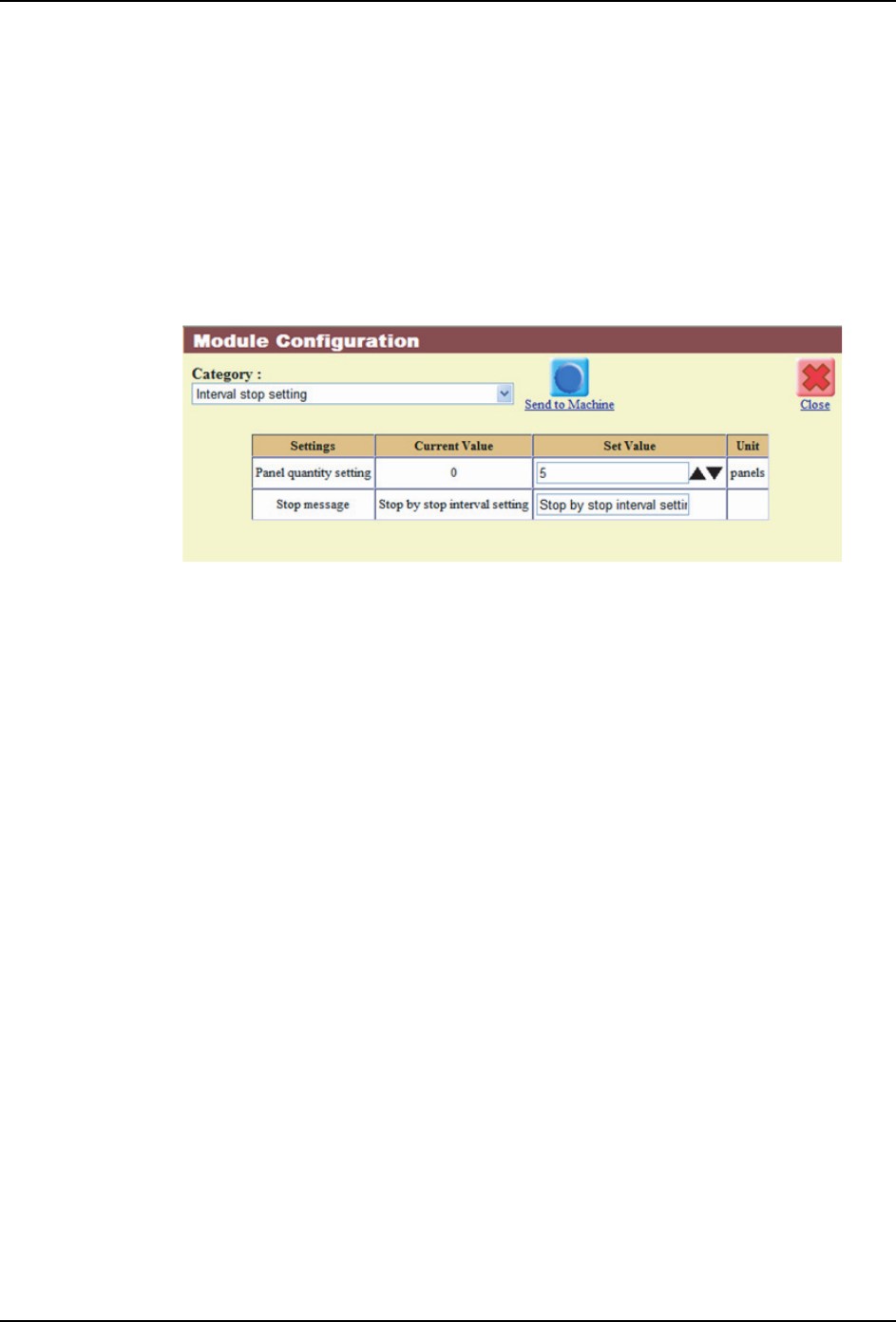 机器在将指定块数的生产电路板送出后周期停止。此时,操作画面上显示出间隔停止向导。