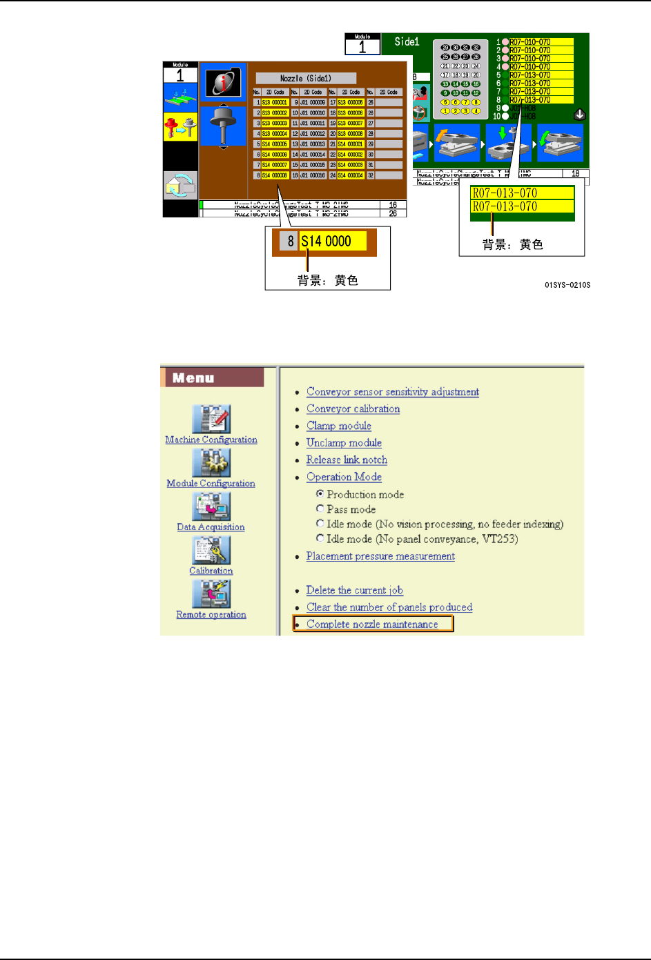 备注 )在手动模式的信息指令及换线时的安装向导中,被切换的吸嘴的代码或别名以黄色的