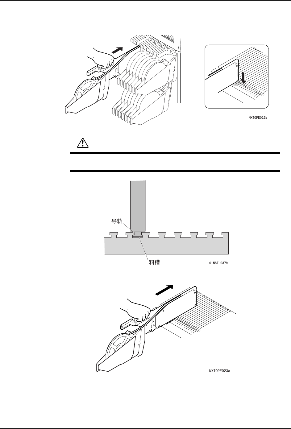 请将供料器底部的导轨准确地插入到料槽内。如果没有正确地安装,供料