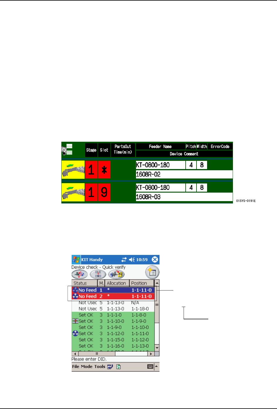 的操作画面上进行确认。一边进行快速验证一边安装供料器时,请在 KIT Handy 或 KIT