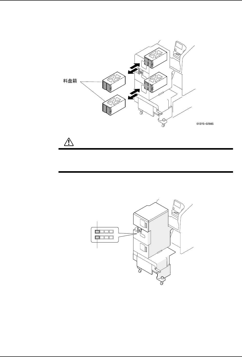 更换时,请务必注意不要使料盘箱落下。料盘箱落下不仅有可能造成机器
