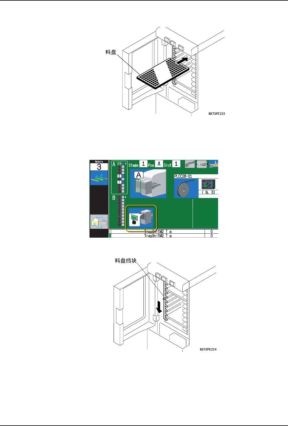 注意 )在将料盘放置到料槽时,请轻轻放置以免产生冲击。另外,请不要使料盘接触到料槽