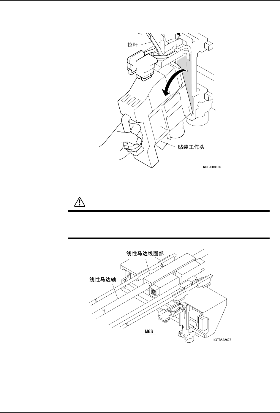 作业中 , 请不要将贴装工作头靠近 Y 坐标方向的轴。线性马达所产生的磁
