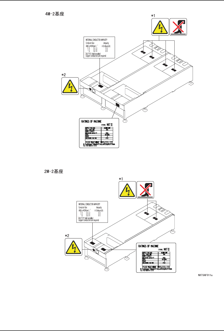 1. 安全指南 QD142-06 12 NXT II 系统手册 1.4 安全标识 表示使用机器时的注意事项的安 全标识贴在机器的下图所示位置。 请仔细阅读记载内容, 安 全使用机器。