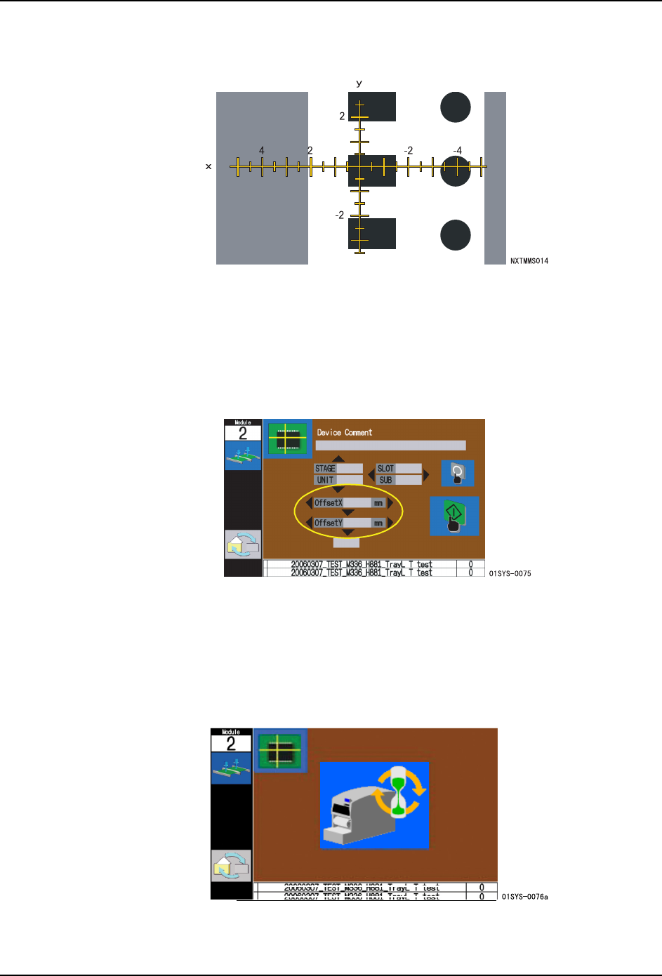 从吸取位置确认的结果中进行 Job 的吸取修正量设定。以下图所示的吸取位置的修正量为例