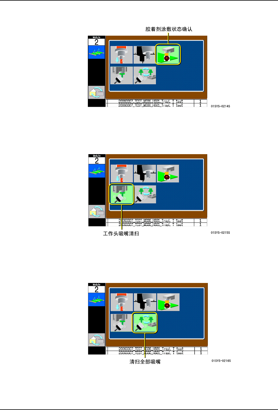 该指令使用在安装了 GL 工作头的模组上。执行该指令,清扫被安装在吸嘴置放台和工作头