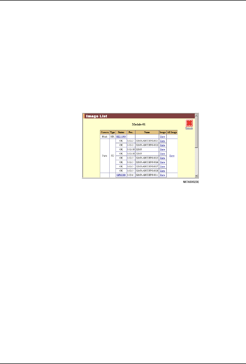 4. 单击 [ 开始 ] 后,就会显示选择的模组的影像一览表。发生错误的影像信息的 [ 状态 ]