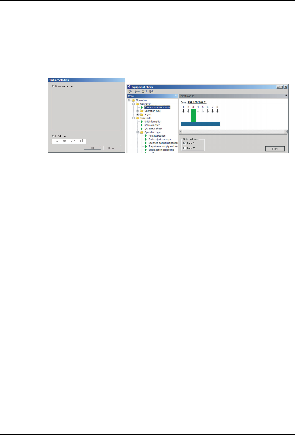 首先,在 [ 机器选择对话框 ] 内指定对象机器(基座)的 IP 地址。接着,从 EquipCheck 窗
