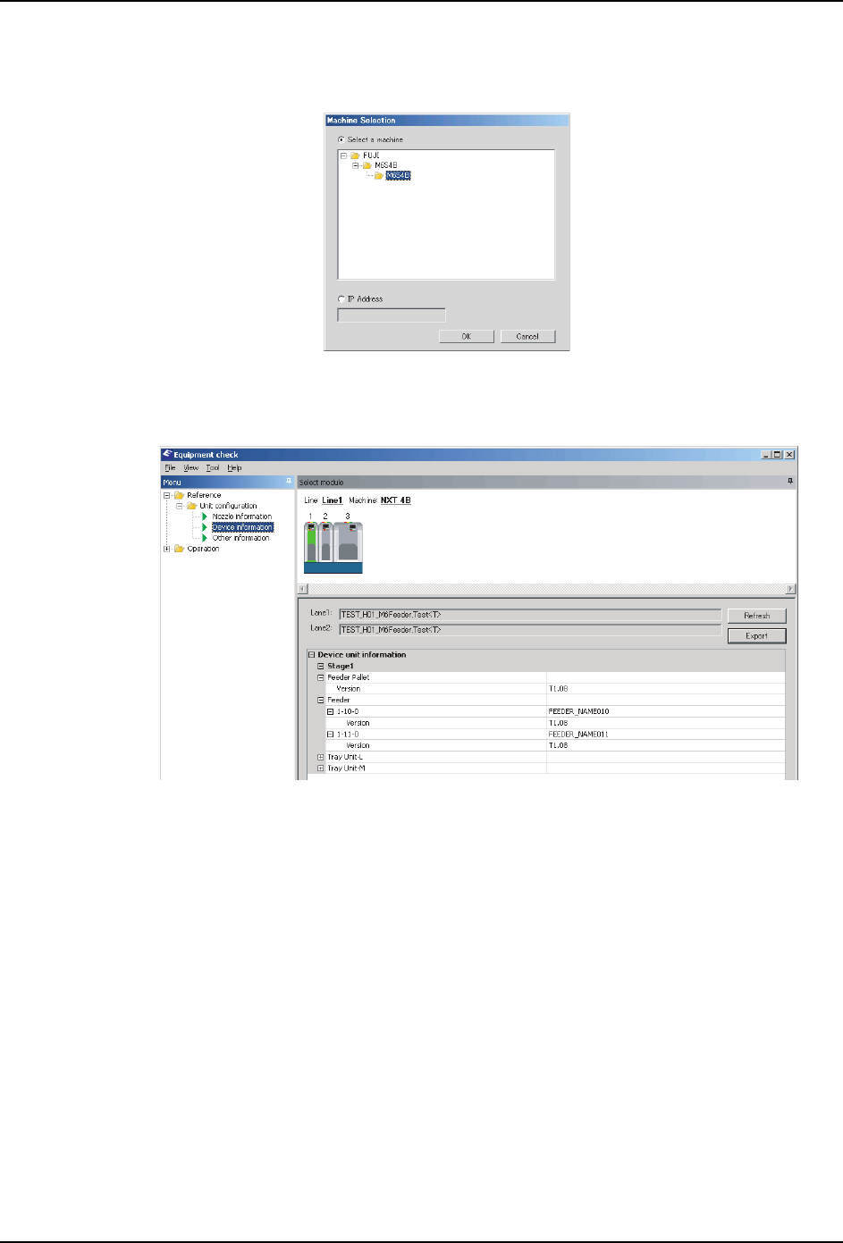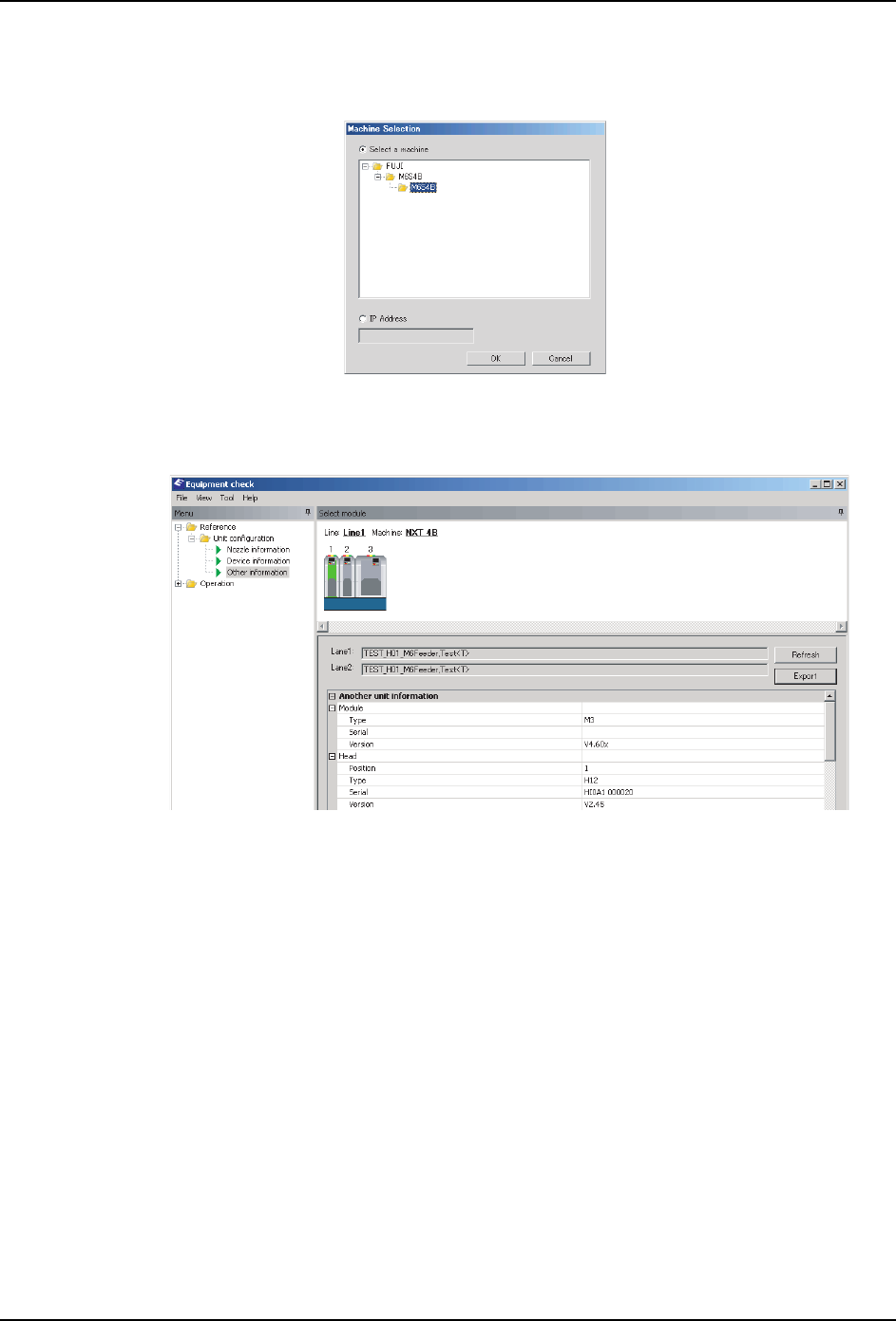 Equipment Check 能够在生产中参照被安装在模组中的吸嘴信息、各单元的序列号和固件版