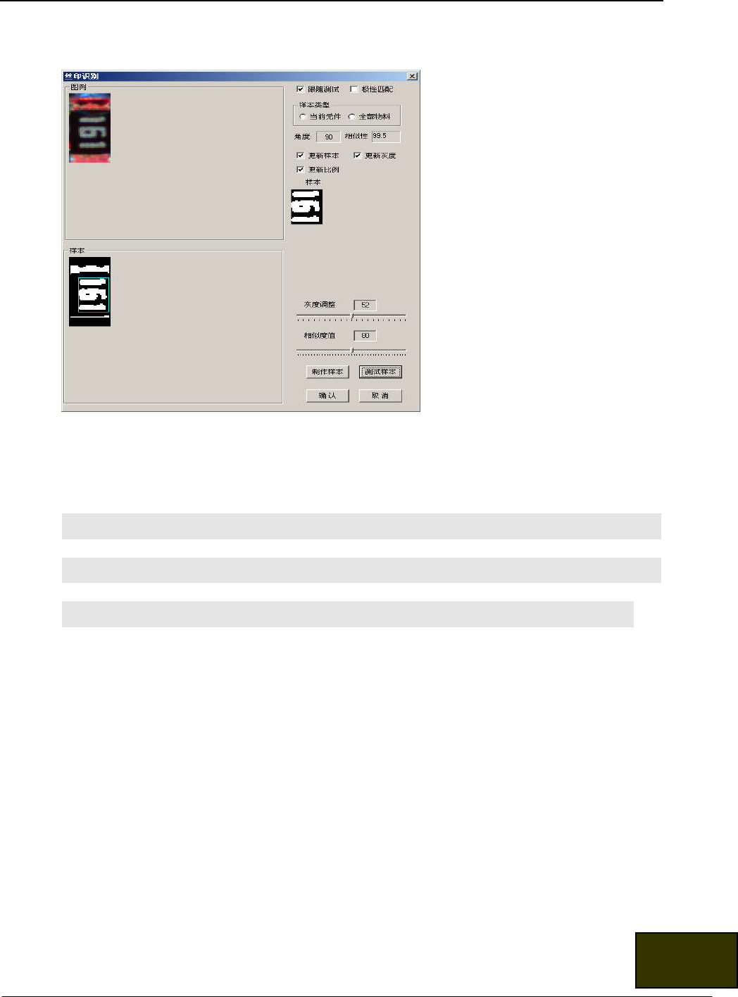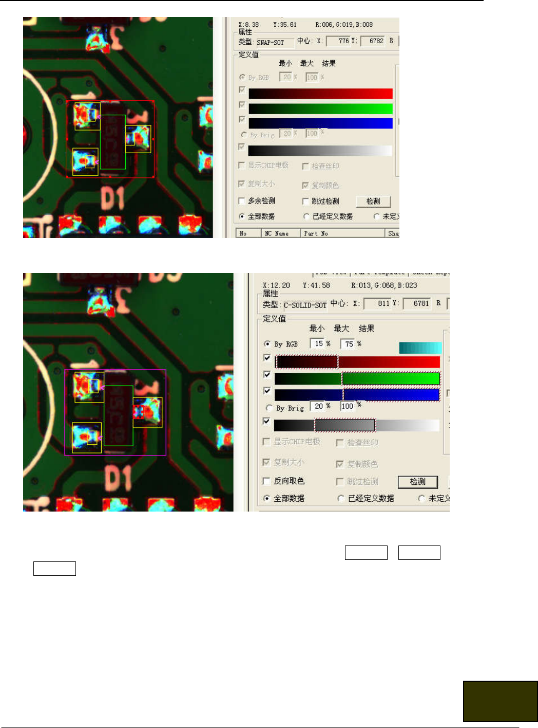 调整技巧 调整灰度值,使相识度最大即可。对位置偏差比较大的元件,