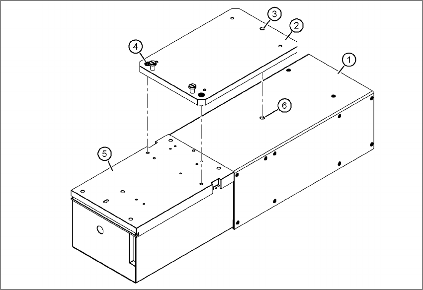 Slide the cover (item 2) nose-first into the base plate (item 3).