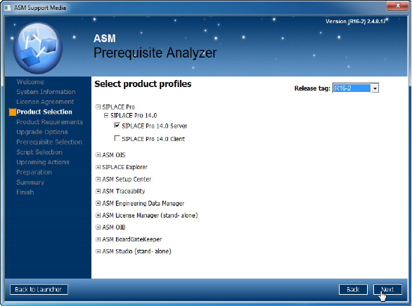 Select the "SIPLACE Pro" product from the "Packages and Features" window.