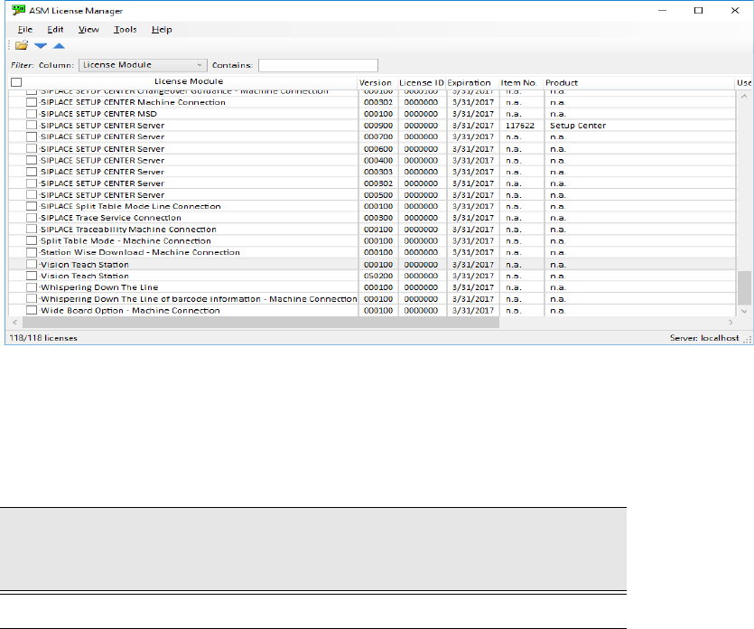 Abb. 7.3 - 3 Lizenzeintrag im ASM License Manager für die SIPLACE Vision Teach Station