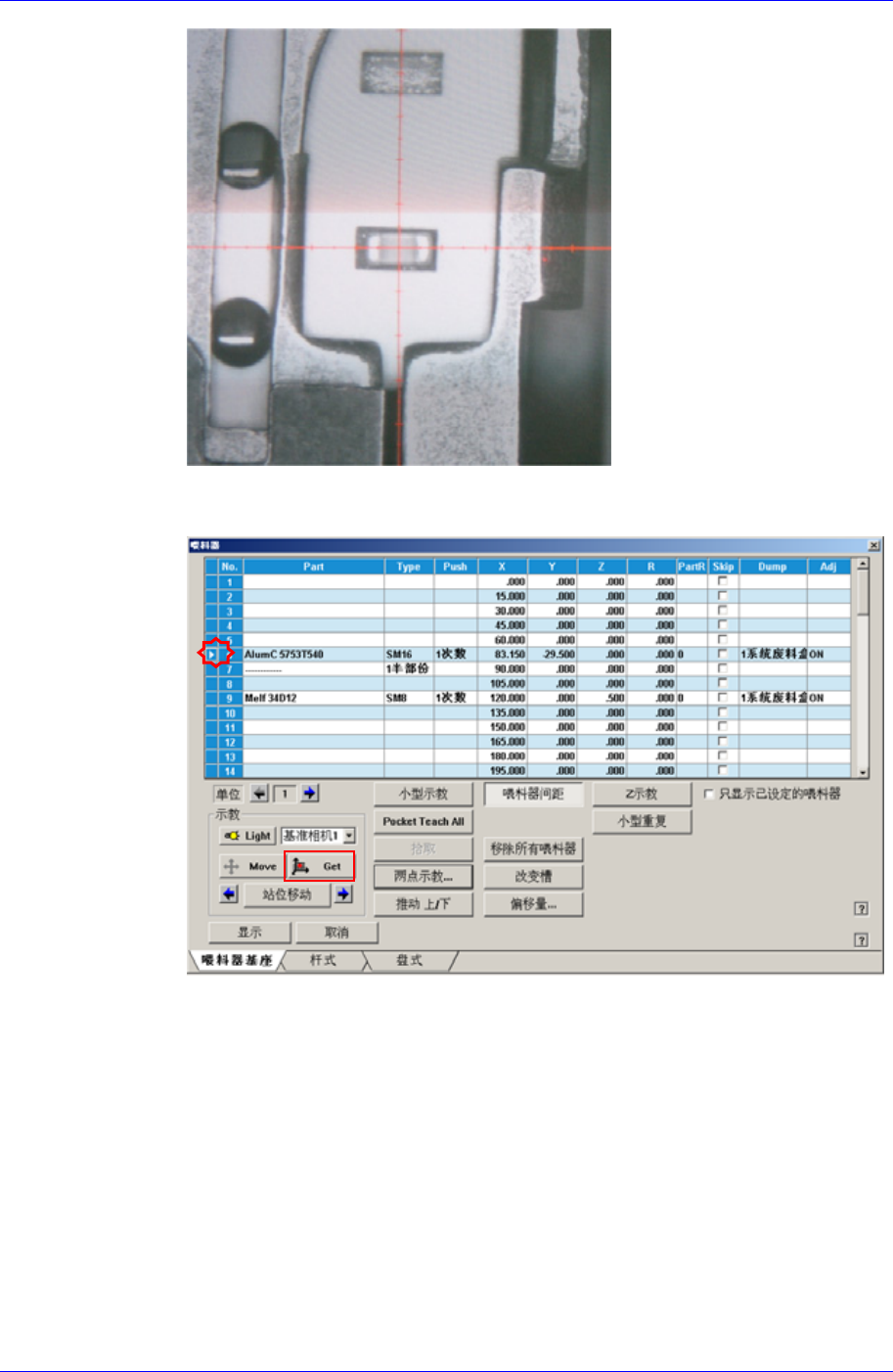 置(或吸着位置)直接可以使用。虽然喂料器在正确的位置,但如果红色十字线交
