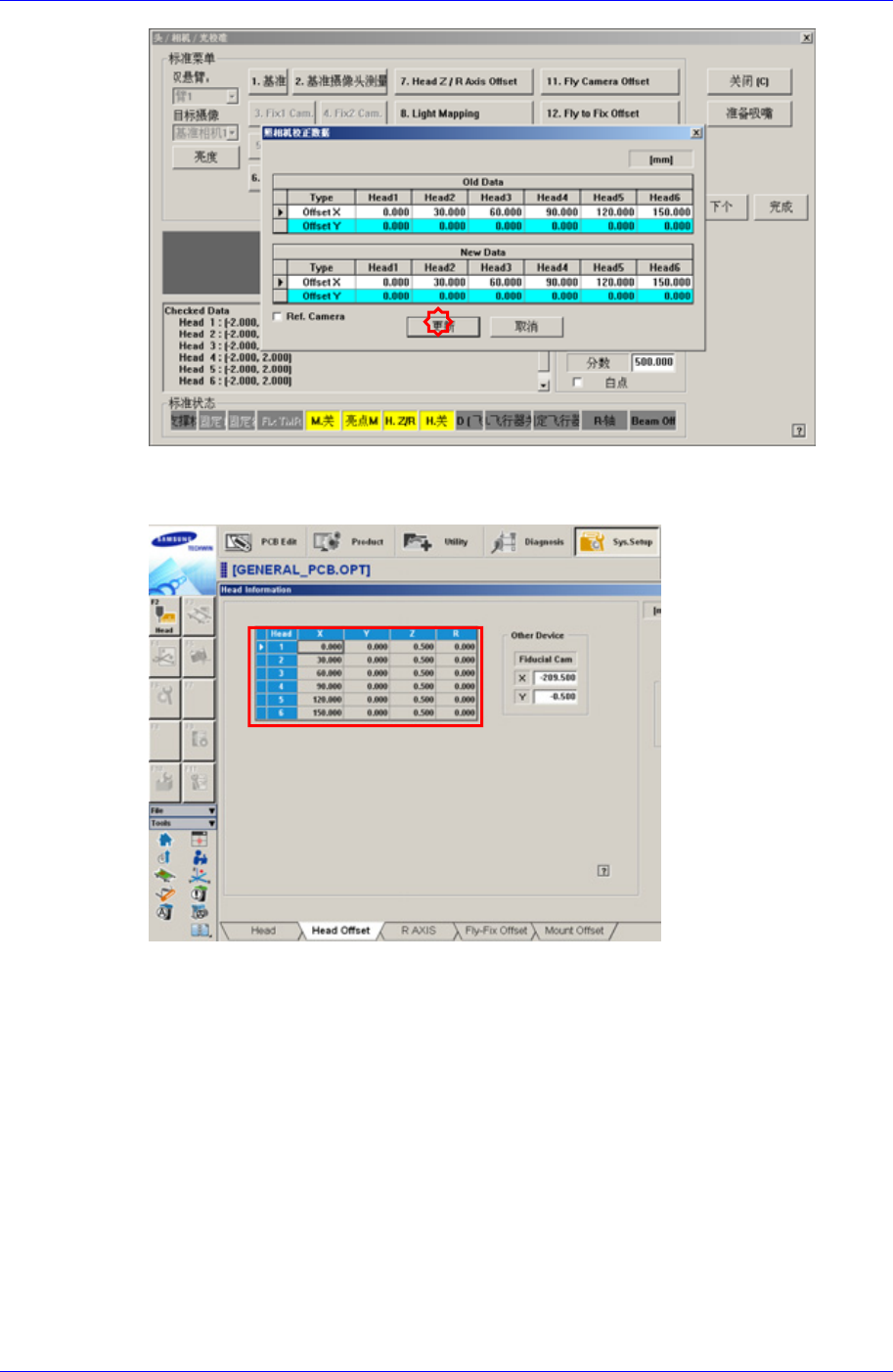 Samsung Component Placer SM41 1 Administrator ’ s Guide Head XY Offset Calibration Head 1 X : -0.04mm ~ 0.04mm, Head 1 Y : -0.03mm ~ 0.03mm Head 2 X : 29.96mm ~ 30.04mm, Head 2 Y : -0.03mm ~ 0.03mm Hea…