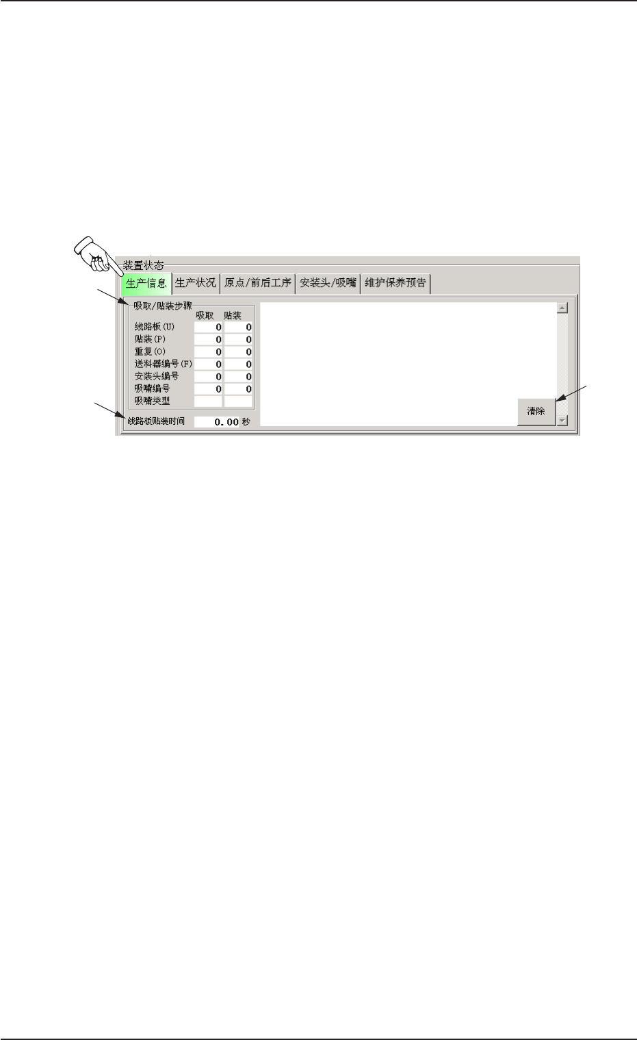 就正在进行吸取和贴装的元件,显示线路板程序的单元编号、步骤