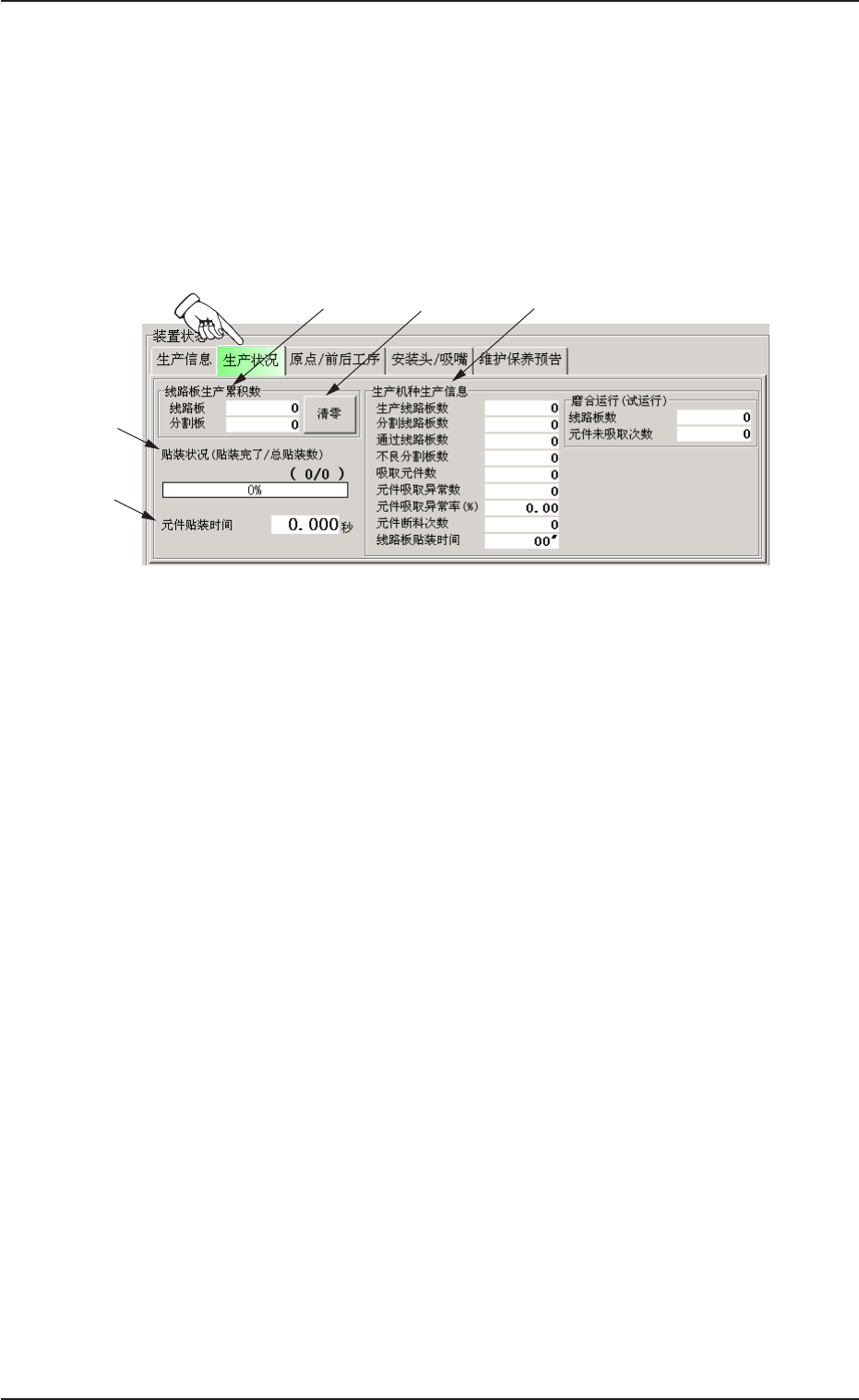 在 “ 自动运行 ” 子菜单界面按下[ 生产状况]Tab 时,将显示如下选