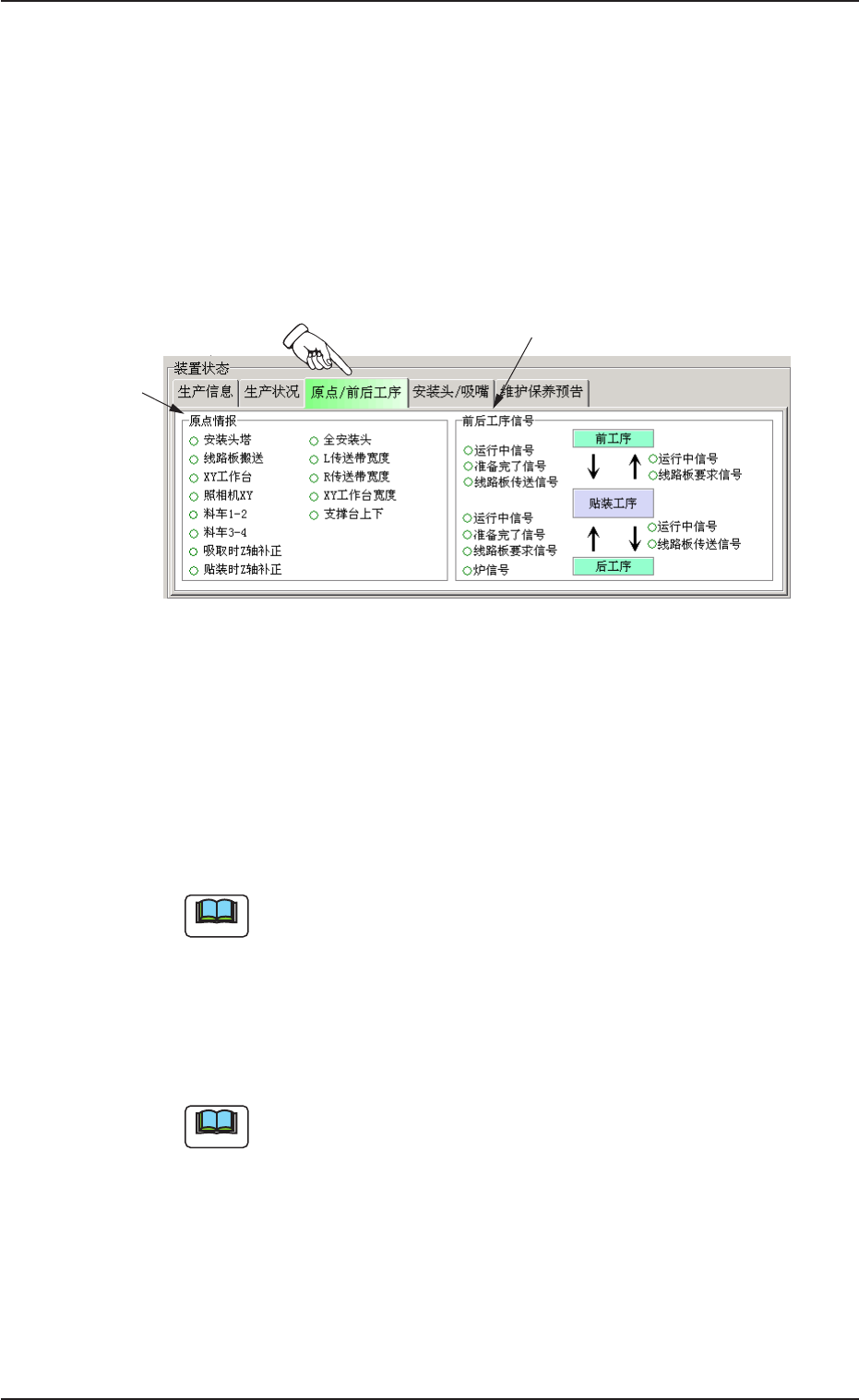 实时显示各单元的原点信息、前后工序信号的状况(ON/OFF 状态)