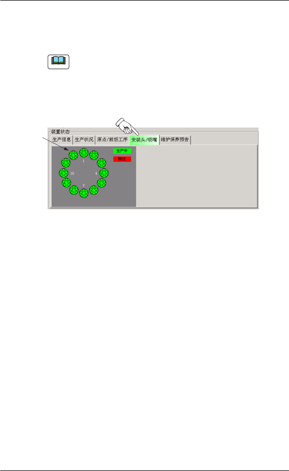 显示安装头和吸嘴的运行状况。