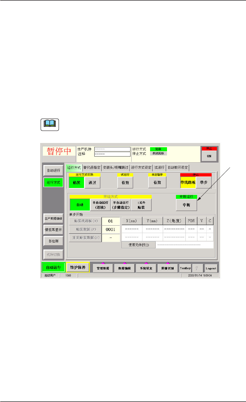 装置进入 “ 传送暂停 ” 状态下,供给传送带、排出传送带上的线