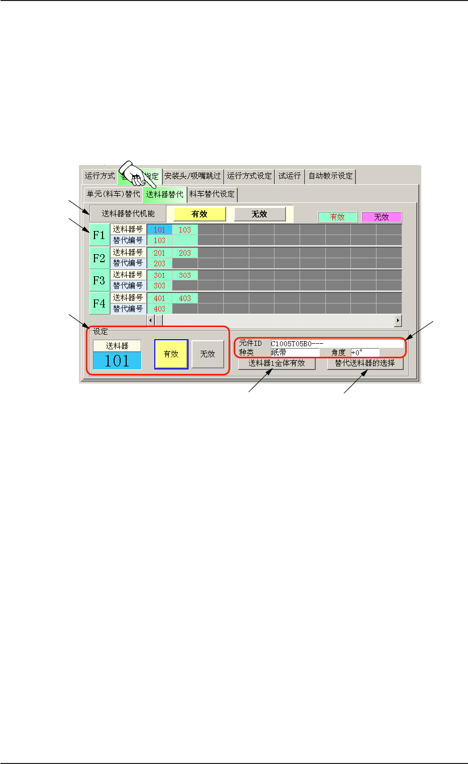 变更送料器替代的 “ 有效 ”/ “ 无效 ” 时,单击变更送料器号,单