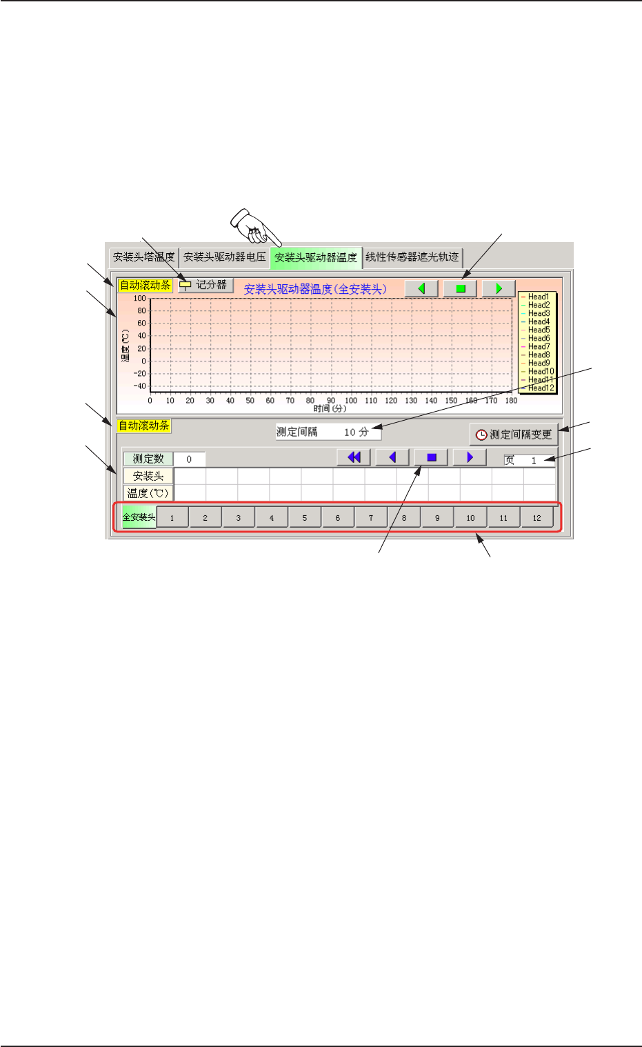 图表显示 * 1 中选定安装头驱动的温度变化。